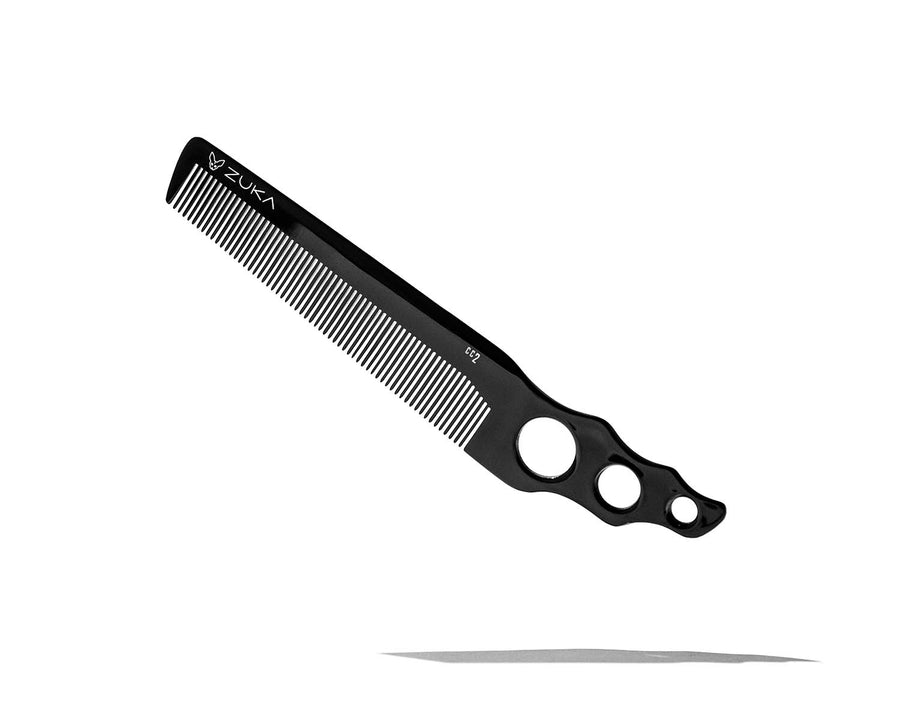 The Zuka CC2 Clipper Comb is handmade from sustainably sourced Organic Ebonite. Each comb requires over 40 steps to manufacture including high pressure molding, tooth cutting, and hand polishing. The diamond wheel cut teeth are seamless, which reduces hair pulling and damage. This process produces combs perfect for all hair types, especially hair with sensitive cuticles and chemically treated hair. The Ebonite material also naturally softens with heat to promote healthier shinier hair.