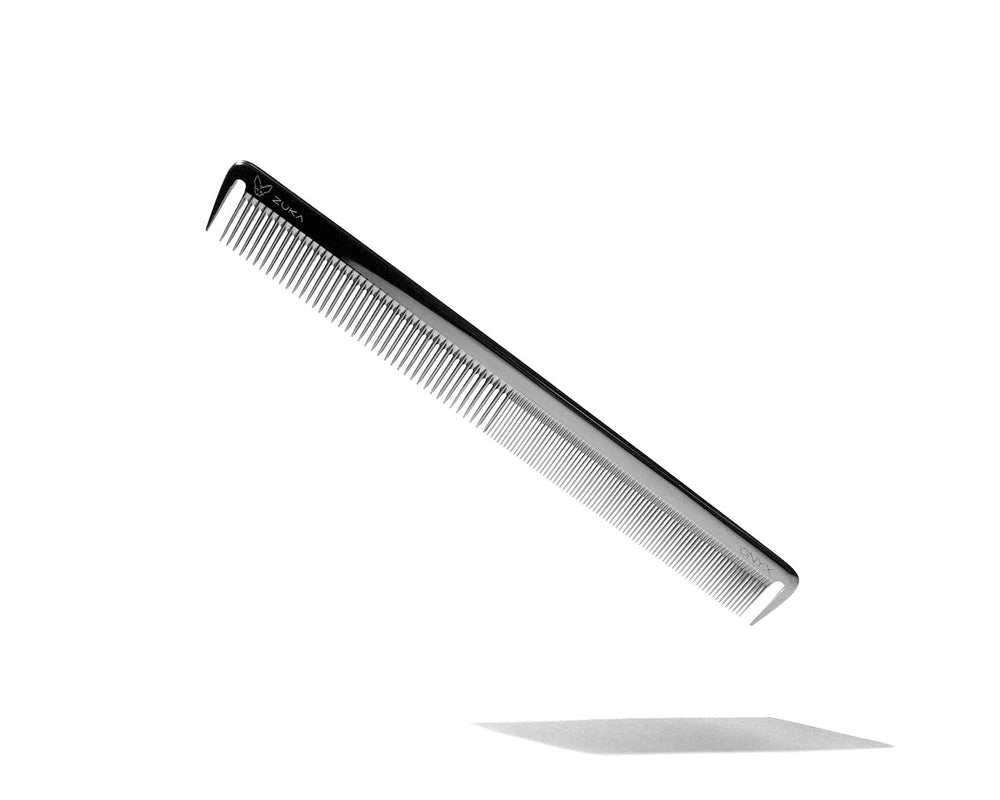 The Onyx Cutting Comb is handmade in Germany from sustainably sourced Organic Ebonite. Each comb requires over 40 steps to manufacture including high pressure molding, tooth cutting, hand polishing, and laser engraving. The diamond wheel cut teeth are seamless, which reduces hair pulling and damage. This process produces combs perfect for all hair types, especially hair with sensitive cuticles and chemically treated hair. The Ebonite material also naturally softens with heat to promote healthier shinier hair.